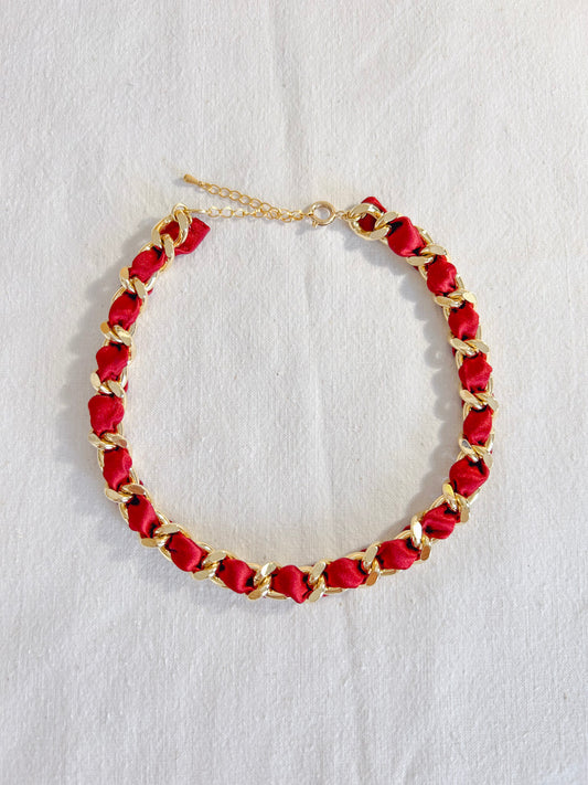 Collier Mailles Upcyclé Tout en Soie 'Rosidae'