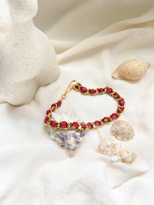 Collier Mailles Upcyclé Tout en Soie 'Rouge Éternel'