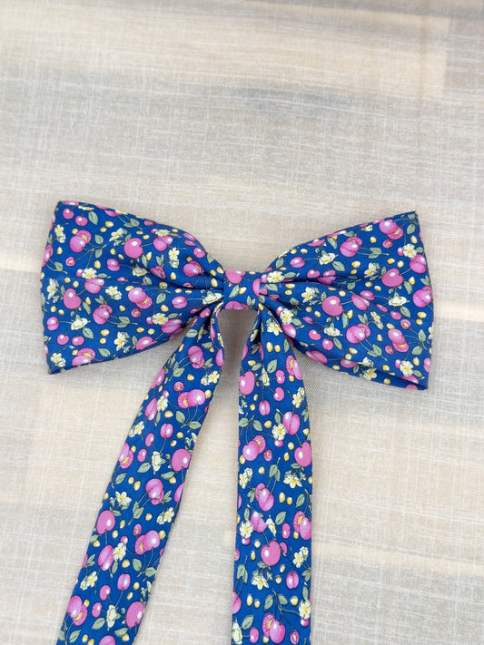 Barrette Nœud Upcyclé 'Ciel de Cerises' (grand)