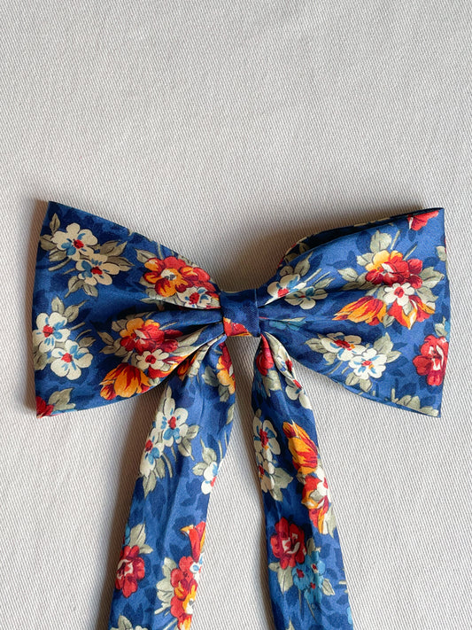 Barrette Nœud Upcyclé 'Bouquet Flamboyant' (grand)