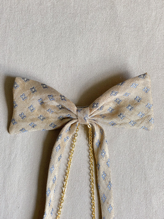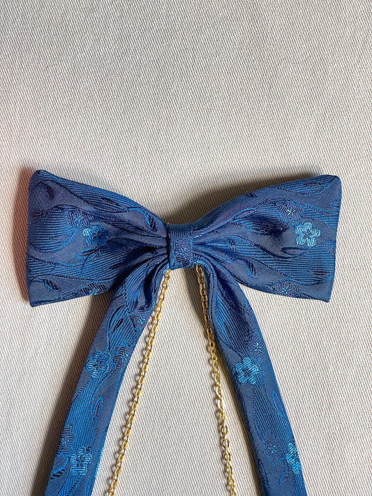 Barrette Nœud Upcyclé 'Bleuet paisible'