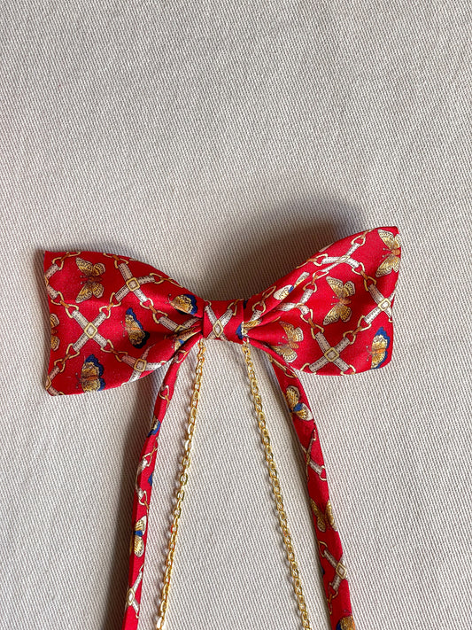 Barrette Nœud Upcyclé 'Envol Rougeoyant'