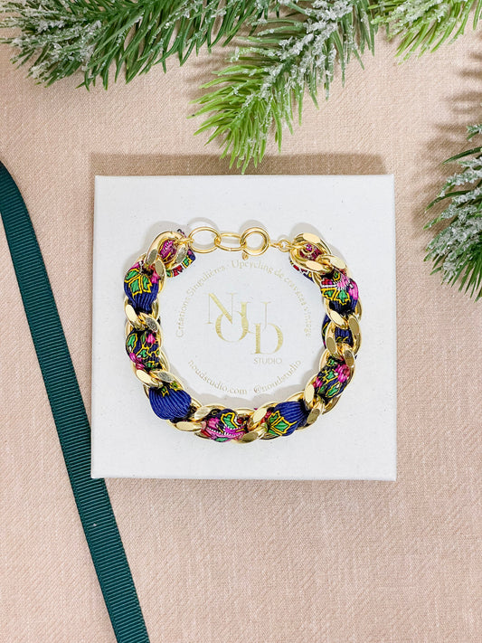 Bracelet Mailles Upcyclé 'Shimmery Navy'