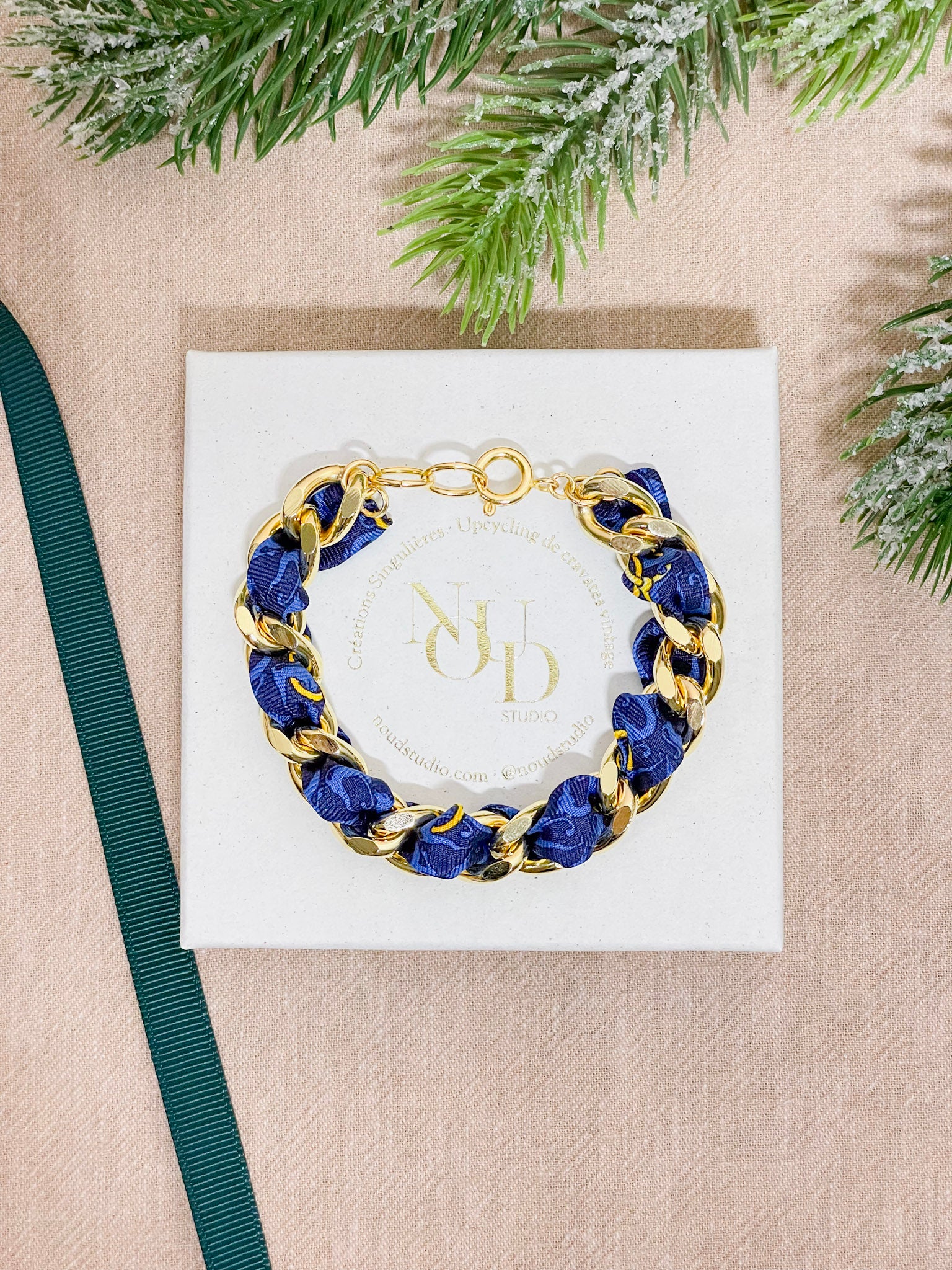 - Bracelet Mailles Upcyclé à partir d'une cravate vintage